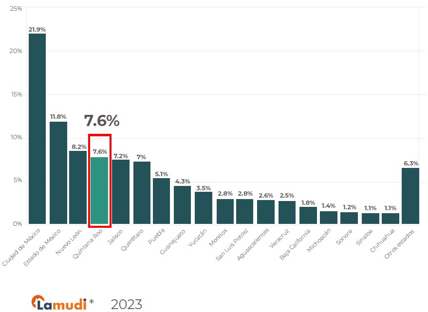 50% of online searches are directed towards properties in 5 states: Mexico City, State of Mexico, Nuevo León, Quintana Roo, and Jalisco..